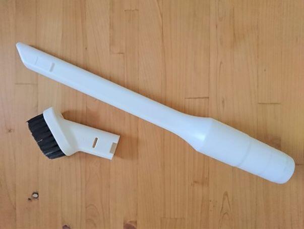 ゴミをかき出すように使えるブラシノズルは、エアコンや障子の桟、換気口、籐製品の細かなすき間、パソコンのキーボードなどの掃除に便利だ。ほうきのように使って、窓のレールの取りにくいゴミをかき出しながら吸い込むこともできる。また、服のホコリを取るのにも使えるだろう。