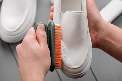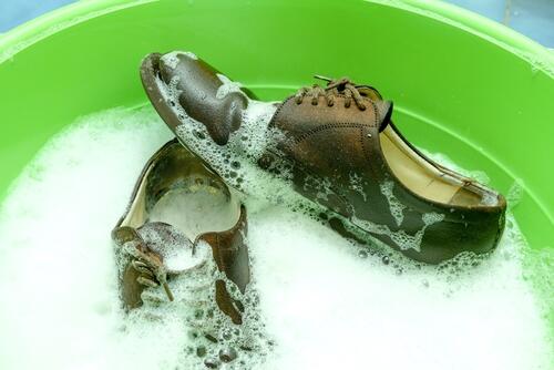 - 布やブラシで表面の土や埃などの汚れを取り、中性洗剤を入れたぬるま湯に入れて靴全体を濡らす