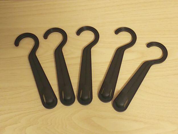 ハンガーにかけた衣類をポールに並べてかけると、型部分の厚みでかさばってしまう。だからといって、詰め込みすぎると衣類にシワが寄る可能性もあるだろう。しかしキャンドゥの段差がけフックにハンガーを通してかけると、一段低いところに衣類をかけることができる。段違いにハンガーをかけることで衣類の出し入れもスムーズになるので、上着やシャツが多い方におすすめのグッズである。