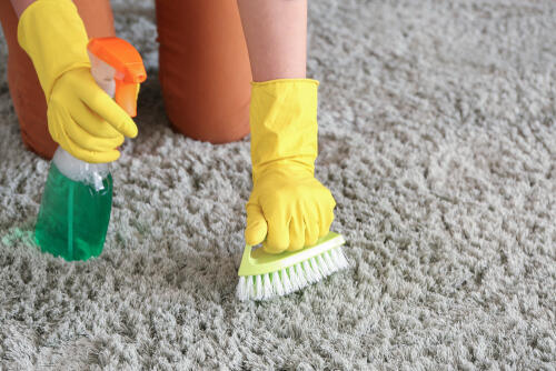 掃除機や粘着式のコロコロクリーナーを使い、ラグの表面のゴミを取り除こう。また、飲みこぼしなどの目立つシミは、水で薄めた中性洗剤をスプレーで吹き付け、吸水性のある布や紙で吸収しておく。さらに屋外の物干しに掛けて、ほこりなどを叩き落しておくとなお良い。