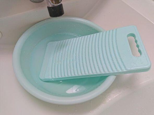 - 洗面台や洗面器などに水をためて洗濯板を入れる。