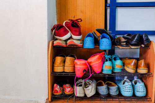 使用頻度の低い靴は、100均のカゴを使った収納アイデアがおすすめだ。普段あまり履かない靴をカゴに立てて収納しておけば、2足しか収納できないスペースでも、6足ほど靴を収納することができる。さらに100均のカゴを使って靴を収納することで、面倒な下駄箱のお手入れも簡単になる。まさに一石二鳥の収納アイデアなので、ぜひ取り入れてみてほしい。
