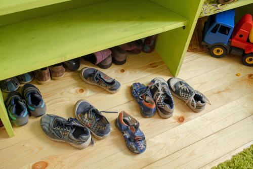 小さい子供がいる家庭の下駄箱は、サイズアウトした靴に収納スペースがとられがちだ。そんなときはいったん下駄箱の整理整頓を行って、履かない靴を出してしまおう。そしてサイズアウトした子供の靴が何足か出てきたら、まとめてニトリのシューズケースに収納するのがおすすめだ。
