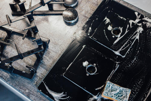 IHクッキングヒーターのガラスプレートは傷が付きやすいため、頑固なコゲが付いたとしても、金属たわしなどの硬い素材のものではこすらないようにしよう。