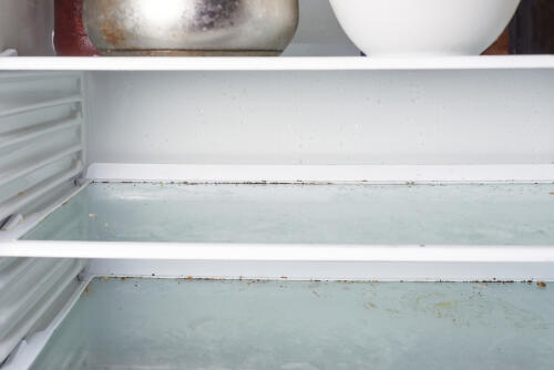 冷蔵庫は低温であるためカビが生えにくいと思われがちだが、食材にカビ胞子がついていたり、ドアの開け閉めによって湿気が溜まったりするとカビが生える恐れがある。シンクやコンロ周りと同じようにこまめな掃除を行うことでカビを防ぐことができるので、2~3ヵ月に1回はアルコールを吹きつけて冷蔵庫内を拭こう。もしカビが発生してしまった場合はパーツを取り外し、薄めた塩素系漂白剤に30分ほどつけ置きすればOKだ。カビが落ちたらよくすすぎ、しっかり乾かしてから冷蔵庫に戻そう。