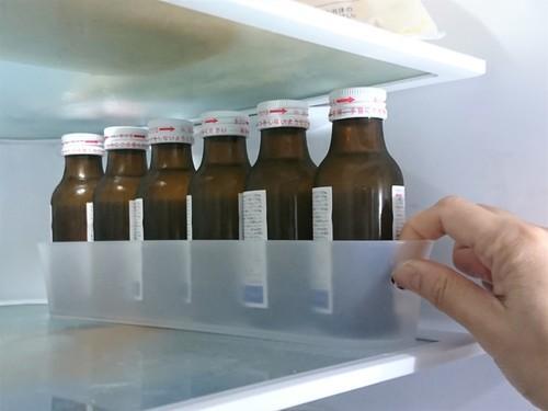 冷蔵庫で保管する必要がある薬も、セリアのミニドリンクストッカーで整理するのがおすすめだ。ほかの食材で汚れたりする心配もなく、必要なときにすぐに取り出せて便利だ。