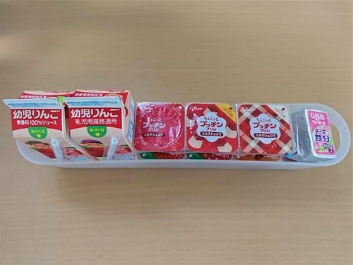 子どものおやつとして人気の高い一口ゼリーは、袋から出してセリアのミニドリンクストッカーに収納しよう。一目で味の種類が確認できて便利である。