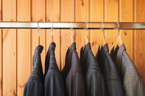 スーツは吊るして数日休ませると、自重によってシワが取れていく。1着を連日着用することがないよう、スーツを数着用意して着回すようにしよう。