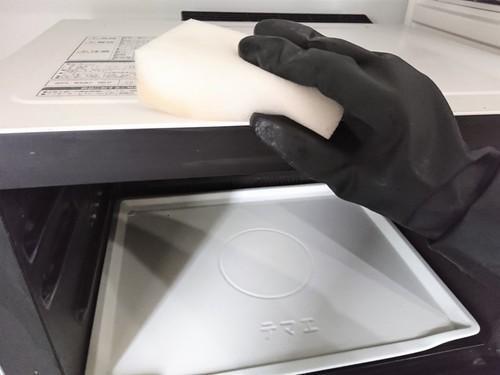 - 加熱後1~2分置き、電子レンジ内の汚れをスポンジでふき取る。スポンジが熱くなっていることがあるので、注意が必要である。