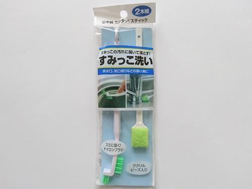 2. セリアの「すみっこ洗い」はブラシ&ナイロンたわしで水周り掃除がかんたん!