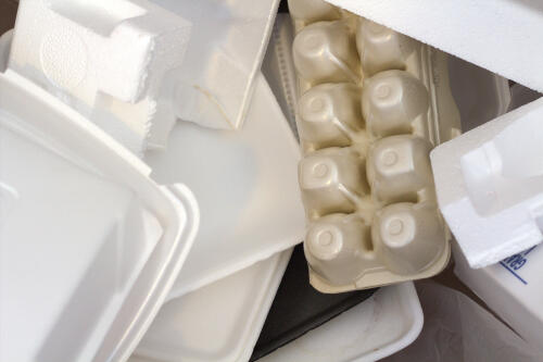一口に発泡スチロールといっても、食品トレーとして利用されている小さく硬いものから、大型家電の緩衝材として利用される大型でやわらかいものまでさまざまだ。
