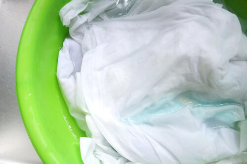 色落ちしそうな衣類に漂白剤を使う場合、先に目立たない場所で試しておくことをおすすめする。また、洗剤をなじませる際は、揉みすぎて血液汚れを広げてしまわないよう注意しよう。