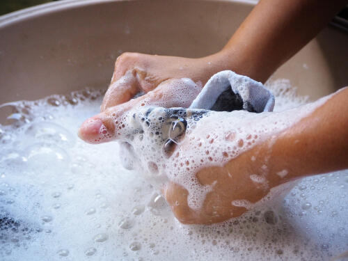 過炭酸塩は洗濯でも使うことができる。洗面器に30~40度のぬるま湯をはって、その中に過炭酸塩を入れる。過炭酸塩の分量は、お湯2リットルに約20~30グラムでいい。そこに漂白したい衣類を入れて、30分ほど放置しよう。そのあと、つけ置きしたお湯も一緒に洗濯機に入れて、通常通り洗剤も入れて洗濯をする。