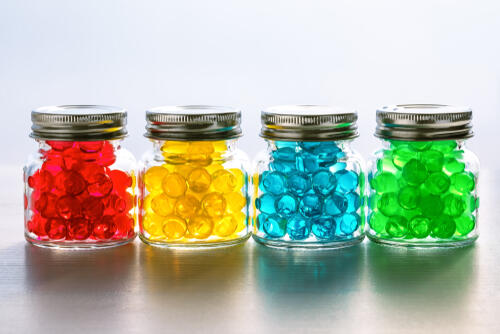 これだけで手作り芳香剤になる。色も楽しみたいという方は、水彩絵の具を少量ずつ、ほどよい色になるまで混ぜていこう。容器の口をオシャレな布などで覆い、紐やリボンで結べばオリジナル芳香剤の完成だ。