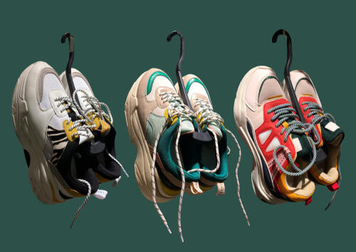 セリアのシューズハンガーは、洗濯したシューズを斜めに吊るすので、中に水が溜まらないようになっている。セリアのシューズハンガーを使えば、立てかけて干すよりシューズが乾きやすくなるので便利だ。