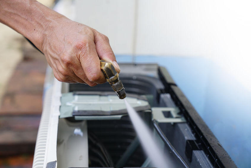 エアコンの室外機をご自身で掃除する場合の方法を紹介する。