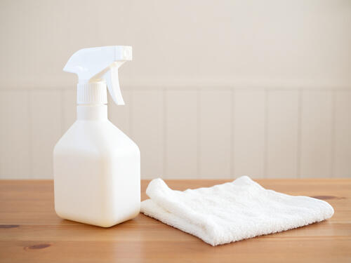 次に、消毒や殺菌の効果がある無水エタノールを使用する。80%に希釈してカビに吹きかけ、雑巾などで拭き取ろう。
