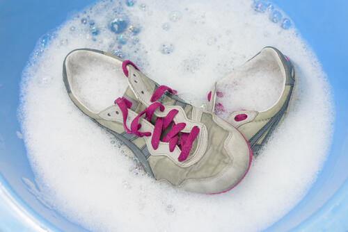 以上が洗濯機で靴を洗うまでの大まかな流れだ。浸け置きすることで汚れがふやけ、洗濯機で回したときに落ちやすくなる。気になる汚れがあれば、浸け置きの最中に擦り洗いをしておこう。