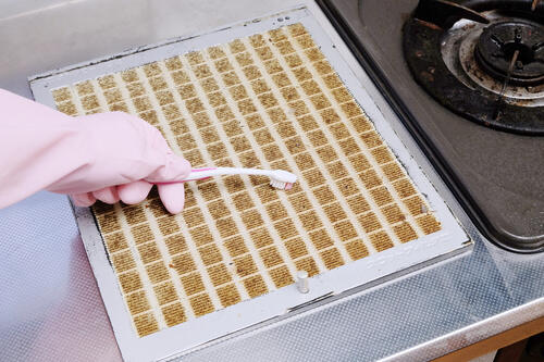 シロッコファンは細かい羽根が付いており、汚れを取るのは大変だ。そこで、台所用中性洗剤をぬるま湯で薄めて、浸け置きをしておく。こうすることで、ガンコな汚れも緩んで取れやすくなる。それでも取れない汚れは、歯ブラシや専用器具などを使って擦るときれいになる。