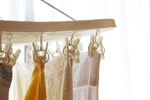バスタオルをできるだけ早く乾かすには、洗濯ばさみ(ピンチ)がいくつも付いた「ピンチハンガー」を活用するといい。