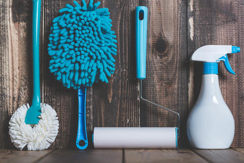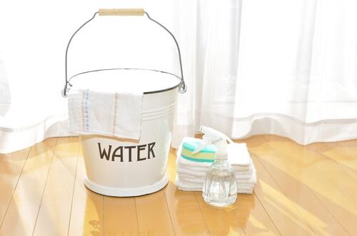掃除機が終わったら洗剤を使って拭き掃除を行う。フローリング用洗剤なら直接ふりかけてもよいが、食器用洗剤や洗浄力の強い洗剤は雑巾に含ませてから拭くのがおすすめだ。カビには除菌用アルコールスプレーを直接ふりかけるが、ひどいカビにはキッチンペーパーにアルコールを染み込ませてカビの箇所に貼り付け、乾燥するまでしばらくおくと効果的だ。
