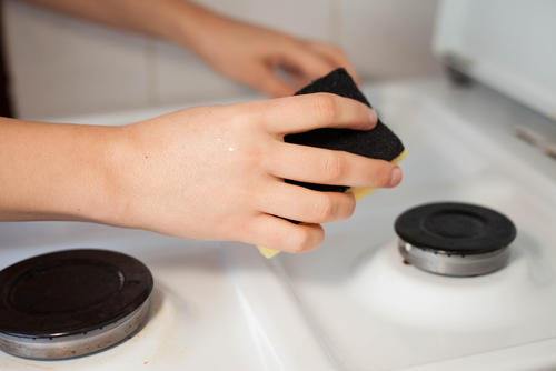 天板は布巾で毎日お手入れしても、気が付くと油汚れがこびりついていることがある。そんなときは、スポンジに食器用中性洗剤を含ませ、油汚れを拭き取る方法がある。一部分のみ油汚れが目立つ場合、全体に広げないようその部分だけ拭き取るよう注意が必要だ。