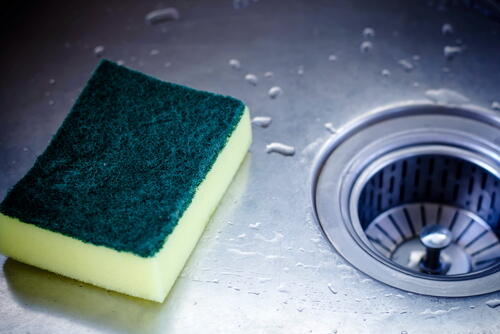 3.スポンジに洗剤を付け、排水口カバーの表と裏のぬめりがなくなるまで、しっかり洗う