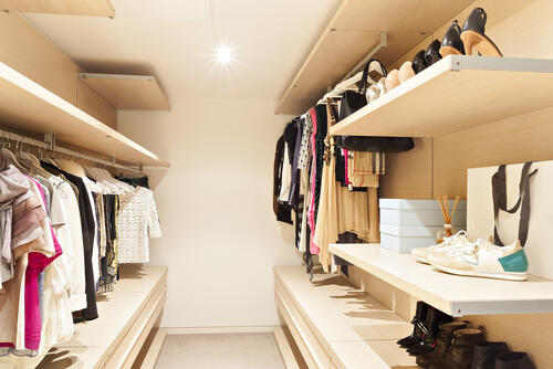 クローゼットにライトを取り付けると、クローゼット自体がおしゃれな空間になる。ウォークインクローゼットにはもともと照明が付いていることが多い。だが、ライトを追加で付けたり付け方を工夫したりすることで、収納庫としてだけでなくインテリアとして居心地のよい空間になる。