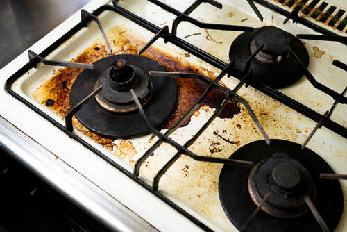 こぼした料理や調味料が付着したあと、ガスコンロの熱によって炭化するケースは多い。一般的な汚れより落としにくく、掃除にも手間がかかる。