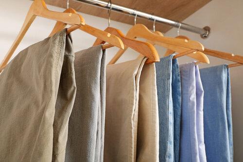ズボンの収納は、たたむ方法と吊るす方法に分かれる。それぞれの特徴やデメリットを紹介するので、衣服を整理するときに役立ててほしい。