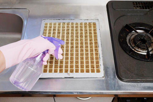 換気扇フィルター掃除は、フィルターを取り外すところから始まる。換気扇フィルターの掃除方法を解説する。