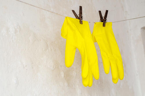 ゴム手袋に洗剤や漂白剤が付いたまま収納すると、劣化の原因になってしまう。また、油汚れなども付着していることがある。ゴム手袋を収納する前に汚れをチェックしよう。