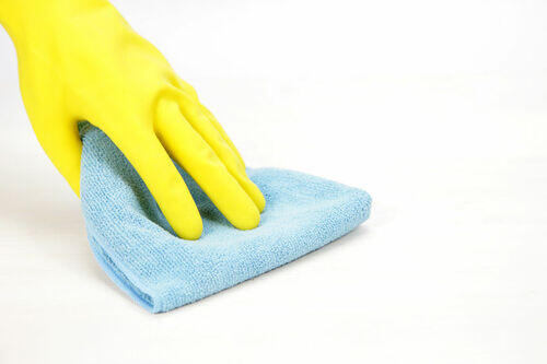 ゴム手袋の下に木綿手袋を装着する