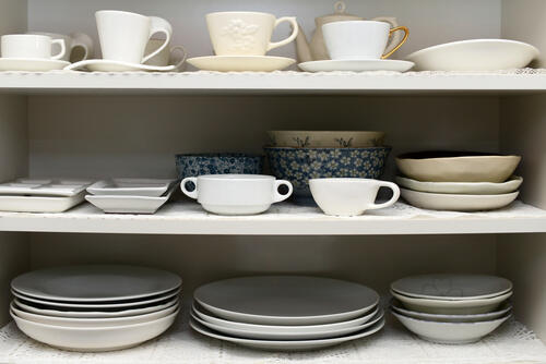 整理するとき食器棚に入り切らなかった食器は捨ててしまおう。食器を確認して割れやヒビがあったり、セットで購入したのに揃ってないかったりする場合は思い切って処分する。