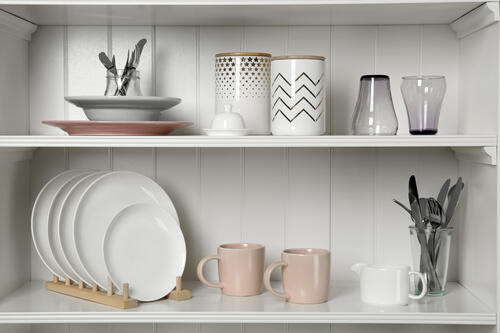 食器棚に収納する食器の枚数や処分の基準を決めておけば整理がしやすい。一定期間使わない食器は捨てるようにすると、必要以上に増える心配はないだろう。
