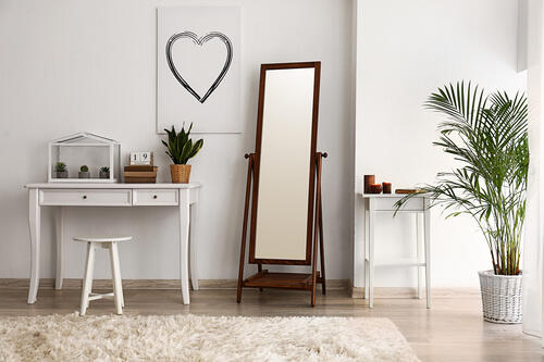 姿見の中には、鏡として使えるだけでなく収納スペースとしても役立つものがある。姿見の扉を開けると中に収納棚があるタイプや、姿見とラックが一体化しているタイプなどがあり、デッドスペースになりがちな姿見の置き場所を有効活用できるのだ。