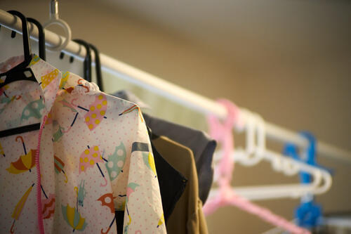 レインコートの洗濯が終わったらハンガーにかけて、シワや形を整えて干す。ポリウレタンやナイロンなどの素材は紫外線によって傷みやすいため、必ず陰干ししよう。