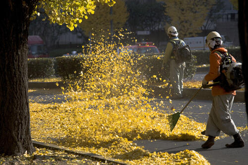 落ち葉用の掃除機とは、モーターによって風を送り出す機械のことだ。一般的には、「ブロワー」と呼ばれることが多い。室内の掃除で使う掃除機は、ゴミを吸い込む。だが、落ち葉用のものは、勢いよく出された空気でゴミを1ヶ所に集める。