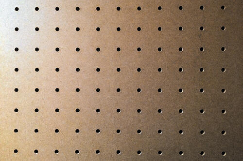 パンチングボードは有孔ボードとも呼ばれ、ホームセンターや100均でも簡単に手に入る。パンチングボードは、細かいピッチで孔が開いているのが特徴だ。主に25mmと30mmのピッチで孔が開いている。この孔に市販のフックなどを取り付けることで、ヘッドホンをはじめいろいろなものを収納できる。
