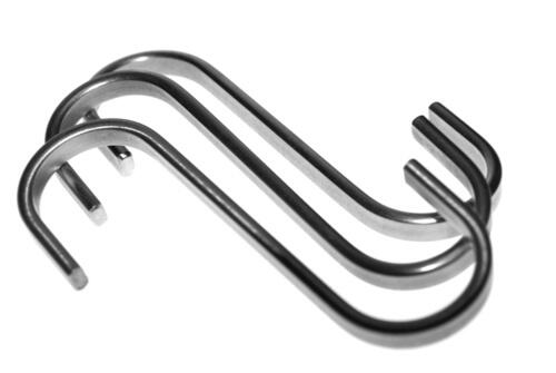 ヘッドホンを収納するためのS字フックには、いろいろな種類がある。ヘッドホンに適切なS字フックは、ヘッドホンを面で支える形が理想的だ。なぜならヘッドホンのヘッドバンドを支える部分が細いと部分的に負荷がかかってしまう。