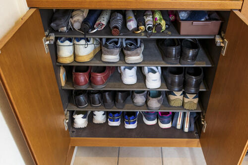 一日中履いている靴は汗を吸い込むため湿気を溜め込みやすい。そのまま風通しが悪い靴箱に収納すると、匂いの原因である雑菌が繁殖する。また、濡れた傘や長靴などは水気が残ったままだとカビが発生しやすいので注意が必要だ。