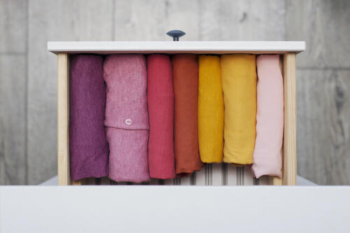 不織布の仕切りケースは柔らかいため、デリケートな衣服を傷つける心配がない。ニトリや無印良品などで購入できる。高さが変えられたり中に仕切りがついていたりと、さまざまなタイプがあるので、収納する衣服や引き出しに合わせて選ぶのがポイントだ。