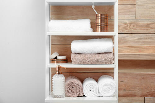 洗面所やトイレに棚がない場合は、新たに設置して洗剤やタオル類などをスッキリ収納したい。洗濯機の上など、デッドスペースに棚を取り付けるのがおすすめだ。棚は市販のものを買うほか、DIYで作るという方法もある。ネジや釘を使いたくない場合は、ホチキスなどで簡単に取り付けできる棚を使うといい。突っ張り棒を2本使い、棚代わりにして収納するのも手だ。