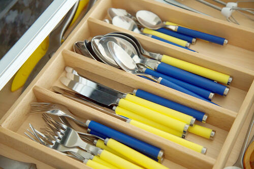 いつも使用するカトラリーを厳選して収納すると、重くならず出し入れもしやすい。洋食用のフォークとスプーン、和食用のお箸など、分類しておけば料理のメニューによって使い分けができるだろう。