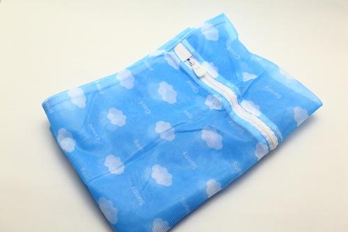 こちらは、ファスナーで開閉する部分がL字になっている。大きく開くので布団の出し入れが簡単だ。乾燥機でも使用可能な洗濯ネットなので、コインランドリーなどで乾燥するときにそのまま使える。