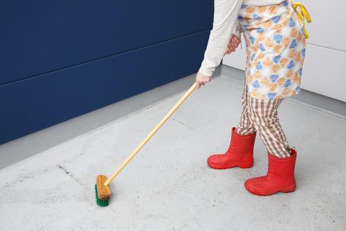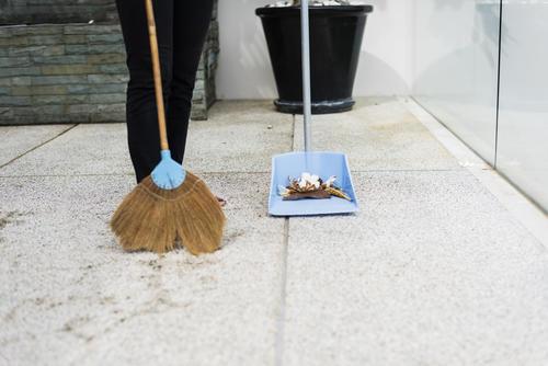 ほとうきとちりとりで埃、葉っぱ砂などを取る。排水口のつまりなども全て取っておこう。