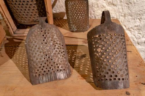 陶器製のすりおろし器も製造された時代やデザインによっては人気がある。日本製のおろし金以外でも、グレーターと呼ばれるヨーロッパ製のチーズおろし器やアメリカ製のブリキのおろし器もおしゃれだ。後ろから光をあてて間接照明に使用するなど、アイデア次第で無骨で男らしいインテリアになる。そのまま玄関などに飾ってもよいだろう。
