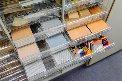 家庭で使用する小物だけでも種類や形状、サイズもさまざまある。ついキレイな収納を意識すると容器のデザインやサイズを統一するなどしがちだが、それでは逆に使い勝手が悪くなってしまう場合もあるのだ。例えば、文房具を1つの引き出しにまとめて収めたいときには、引き出し用の整理トレーを活用するとよい。収納する文房具の形状やサイズに応じて仕切る位置を変えるなどの工夫を施すとより使い勝手がよくなる。また、お弁当作りのときに使用するピックなど長さのあるものは、指の届きやすい深さの空き瓶などを使用するとキレイかつ使い勝手よく収納することができる。クッキーの型は100均の書類ケースに収納するのがおすすめだ。