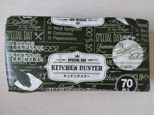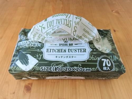 3COINSのキッチンダスターは一辺がおよそ20cmの正方形をしている。大き過ぎても小さ過ぎても、ふきんとして機能的ではなくなってしまうので、3COINSのキッチンダスターはふきんとしてほどよいサイズだろう。不織布なので、大きいものを切って使うこともできるが、切る必要がなく、袋から引っ張り出すだけですぐに使えるのは便利である。