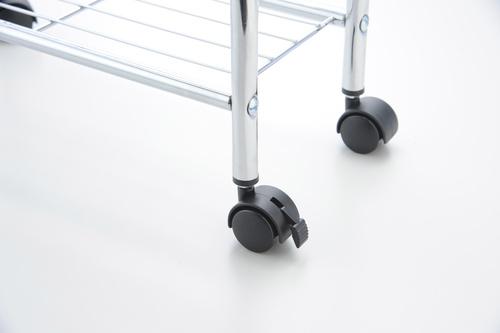 キャスターが付いているので、重いものを置いても片手で簡単に出し入れできる。また、メタルラックの特徴は、サビにくく耐久性があるという点だ。水をよく使うキッチンにはおすすめだ。